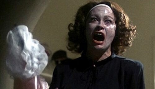 I sincerely enjoy MOMMIE DEAREST for what it is - a weirdo artifact of a bloated studio system eager to eat its own for the sake of profit. The film is mean-spirited, knowingly campy, and delightfully unhinged. It’s also one heck of an entertaining movie. Even as I sat in the theater with a grin plastered on my face through most of the film, I couldn’t help but feel a little weird listening to the theater fill with guffaws and shrieks of laughter as a child is beaten with a wire hanger. When I returned home after the screening, I tried to explain the movie to my wife and showed her the “No wire hangers!” clip from the film on YouTube. She sat in stony silence, her non-reaction drilling in how incredibly disturbing the movie is when taken outside of context.